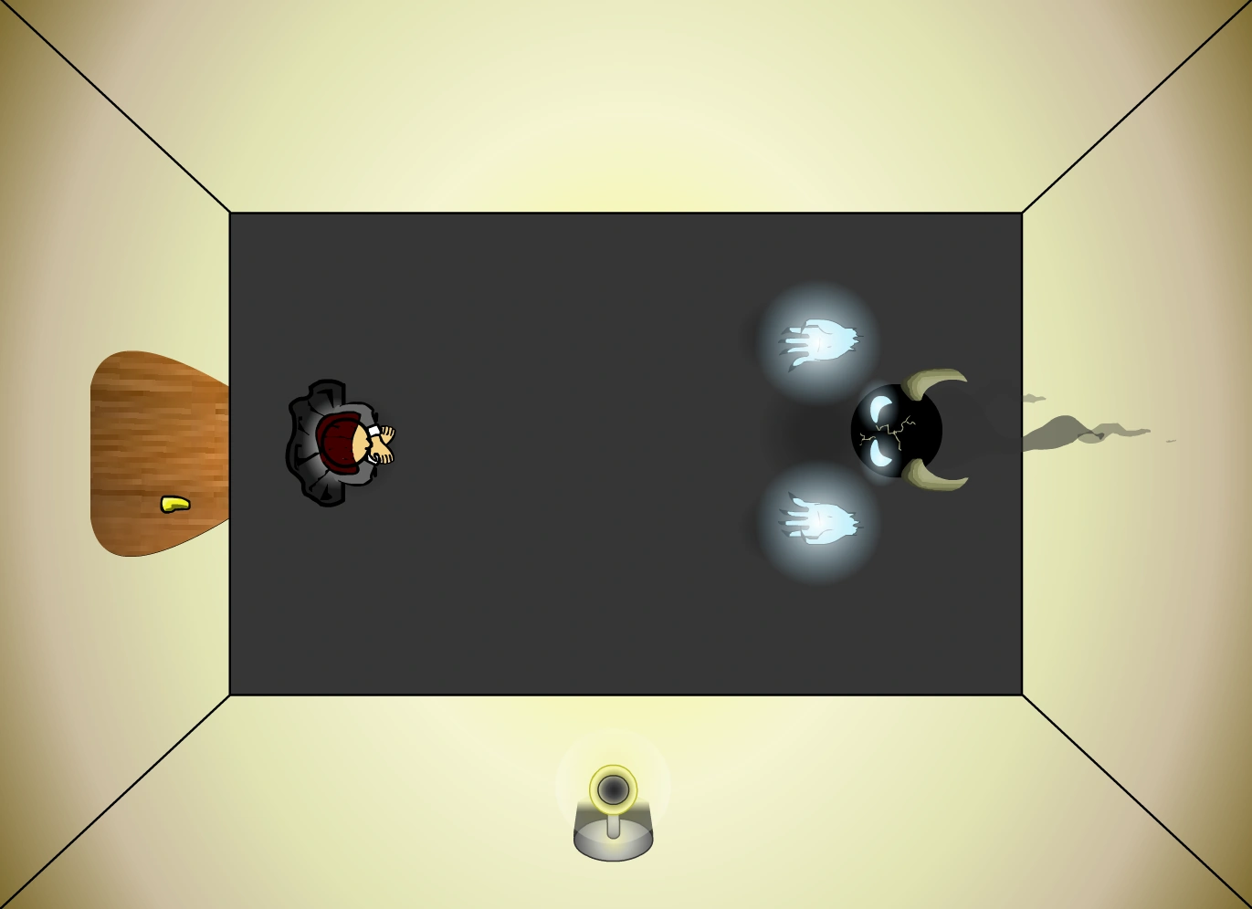 - To choose to engage in battle with Tastidian, by having put on the bracelet that Guy gives him. Tastidian, after losing his patience, realises that the player wears the slave bracelet. Something occurs and the player is unable to react. Suddenly he finds himself somewhere else (presumambly Headquarters of TRPG 2) and falls unconscious.